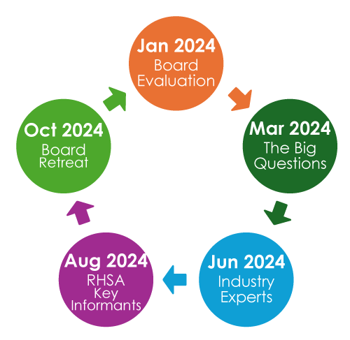 We are grateful for the engagement and guidance of Ray Madadhiele of Business Energizers. He led our board’s 2024 reflective process from start to finish. As illustrated in the graphic, we took time at each of the Board of Directors meetings to gather ideas and data from our informants. From our internal board evaluation, to hearing from industry experts and key informants to a two-day retreat, the Board of Directors ensured a deliberative and inclusive process.