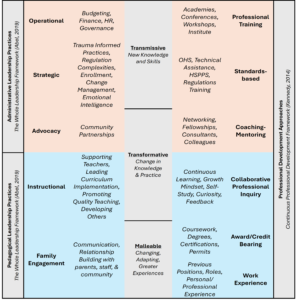 Professional development can be a transformative journey that enhances leaders’ knowledge, skills, and attitudes. In my interviews with Head Start leaders, they emphasized the benefits of various training opportunities, including compliance training, financial training, workshops, conferences, and specialized leadership development programs. These initiatives equipped them with essential skills such as budgeting, strategic planning, human resource management, regulatory compliance, and data analysis, inspiring them to reach new heights in their roles as administrative leaders.