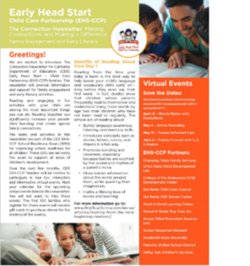 However, along came the pandemic in 2020, limiting gatherings and travel, so innovation was again called for to create virtual workshops. The CDE EHS-CCP staff developed a literacy program that would include monthly parent webinar, newsletter, and a series of books to be delivered to all of their EHS-CCP families. To implement the Literacy Program, the EHS-CCP staff reached out to HSW to collaborate on an innovative way to increase and support parent involvement.